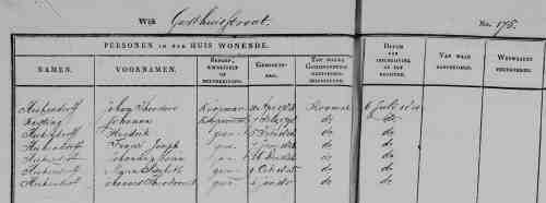 Op 13 mei 1826 doet Johan Theodoor Hickendorff aangifte van het overlijden van zijn buurvrouw, Johanna van Koetsveld. Hij doet dat samen met Arie Maasbach. Johan is uitdrager en Arie zakkendrager. Johan trouwde met Johanna Kesting, dochter van Phillipus Kesting en Maria Ledderoos, op 3 Jan 1818 in Tiel. (Johanna Kesting werd geboren op 9 Feb 1796 in 's-Gravenhage en overleed op 6 Dec 1872 in Tiel.) |