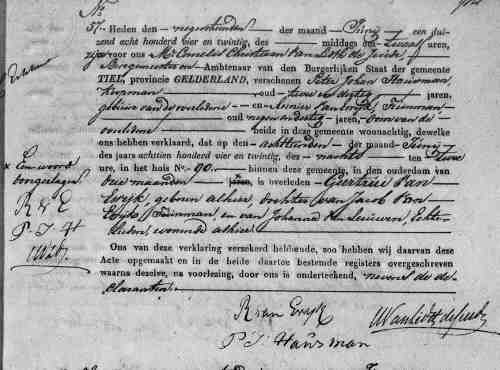 • Overlijdensakte: Nr. 57, 19 Jun 1824, Tiel. |